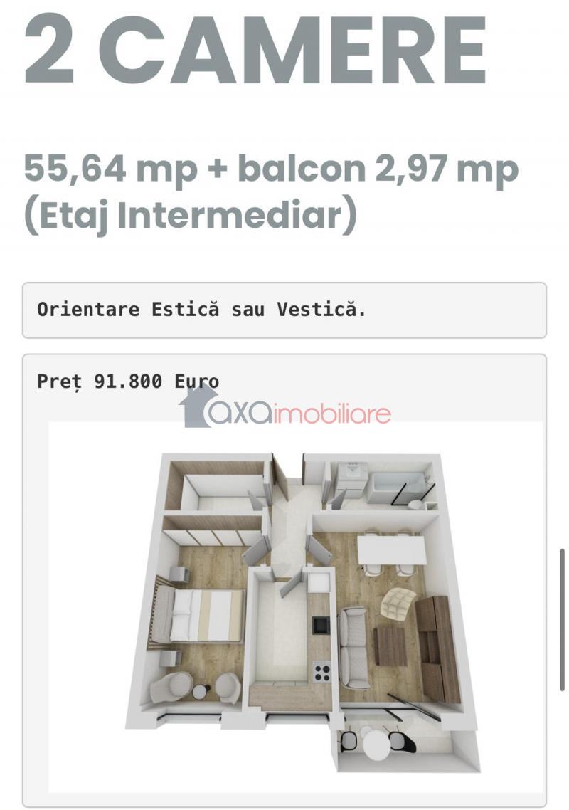 Apartment 2 rooms for sell in Floresti ID 6785