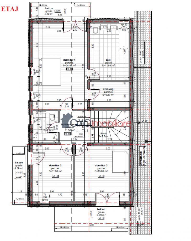 Al doilea nivel / Etaj: 3 dormitoare, 2 bai, 1 hol, 1 dressing, 3 terase. (Unul din dormitoare dispune de dressing si baie).
