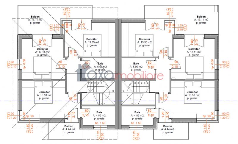 ETAJ / Al doilea nivel: 3 dormitoare, hol, 2 bai, 2 balcoane. (Unul din dormitoare este matrimonial; dispune de baie proprie si de balcon).