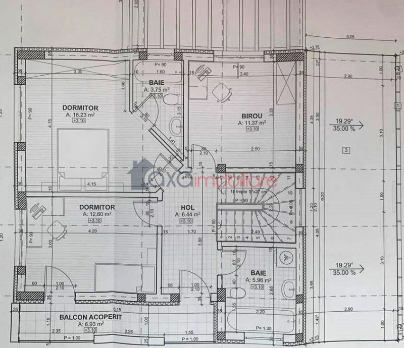 ETAJ: 3 dormitoare, 1 hol, 2 bai, 1 balcon acoperit.