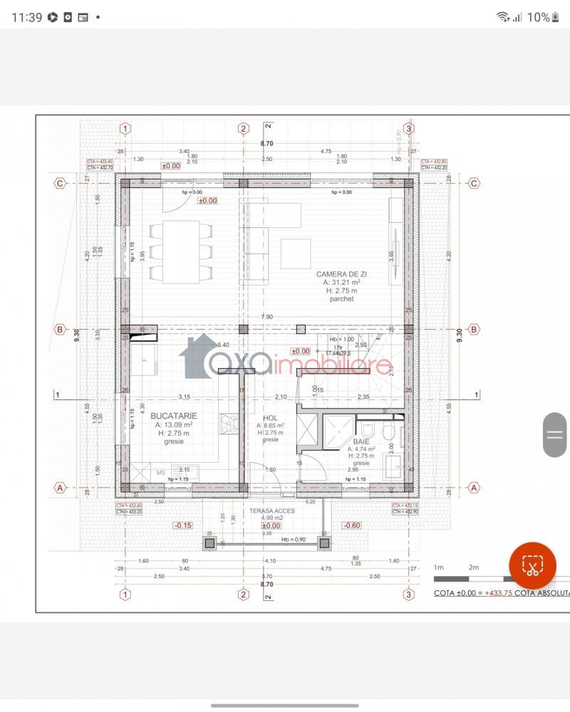 Parter - Hol, Baie, Bucatarie, Living, Loc de luat masa, Terasa acoperita de aprox. 30 mp. Acces etaj scara interioara.