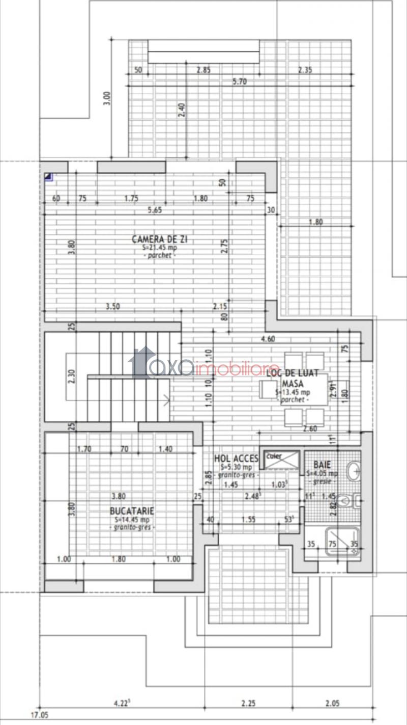 PARTER / PRIMUL NIVEL: hol, camera de zi, loc de luat masa, bucatarie, baie, terasa.