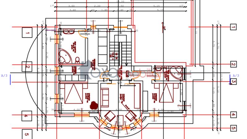 PARTER / PRIMUL NIVEL: 1 living, 1 bucatarie, 1 birou, 1 debara, 1 baie, hol, 1 terasa, scara interioara.