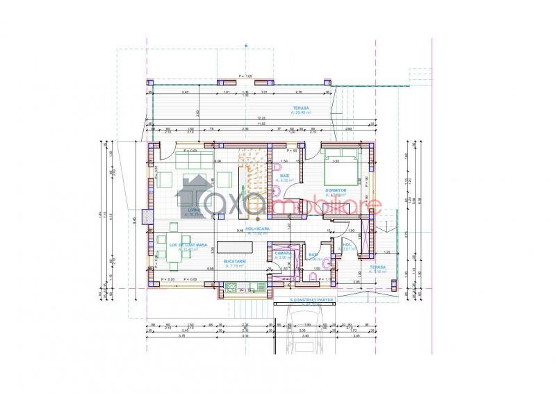 PARTER: living cu bucatarie de tip open space, 1 dormitor matrimonial (cu baie proprie), 1 terasa, casa scarii, hol, 1 baie.