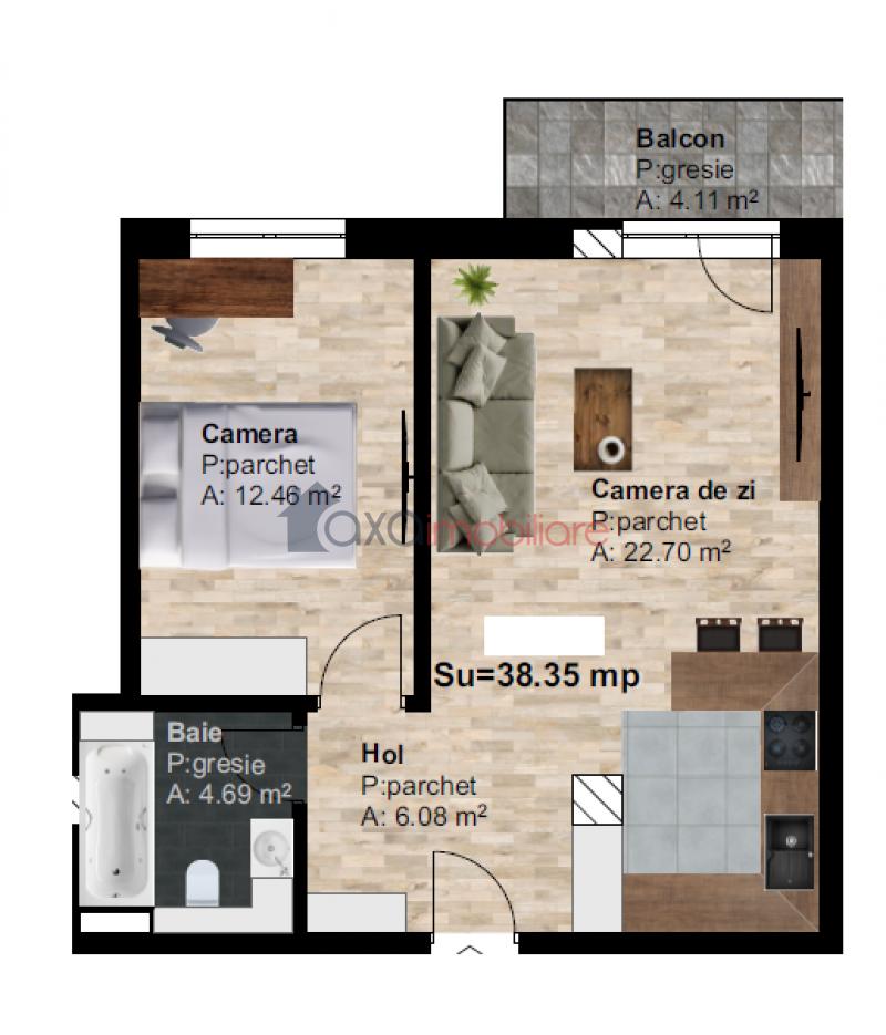 Suprafata utila este de 38.35 mp + 1 balcon deschis.