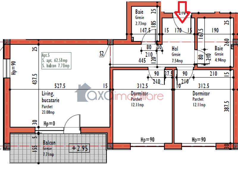 Imobilul este compus dintr-un living cu 1 bucatarie de tip open space, 1 hol, 2 dormitoare, 2 bai si 1 balcon.