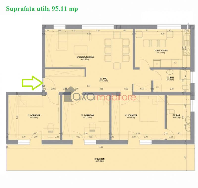Suprafata imobilului este de 95.11 mp si este compus dintr-un hol, 1 living cu 1 dining, 3 dormitoare, 2 bai si 1 balcon.