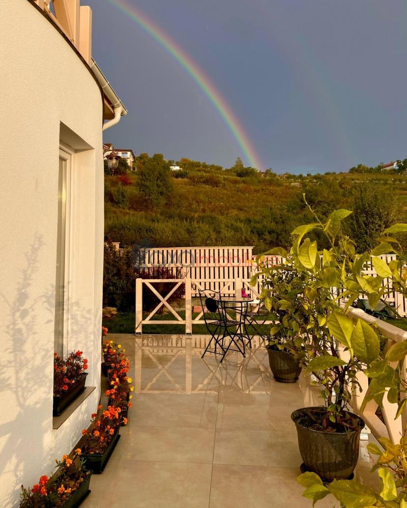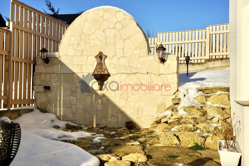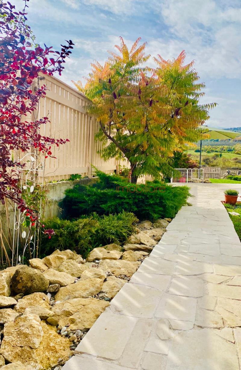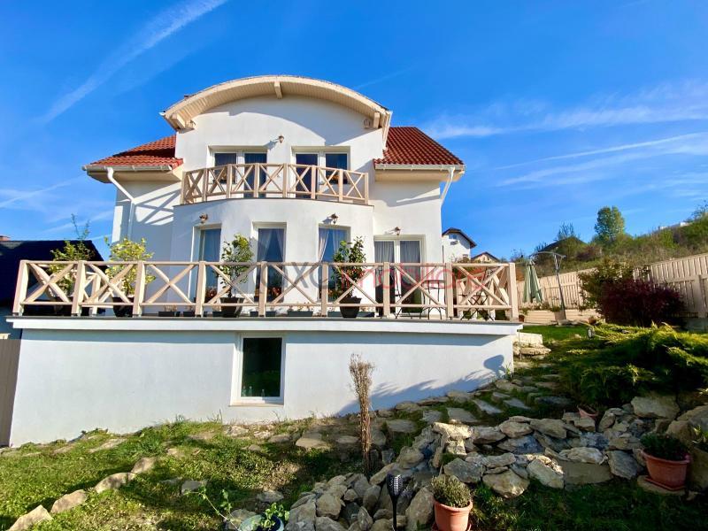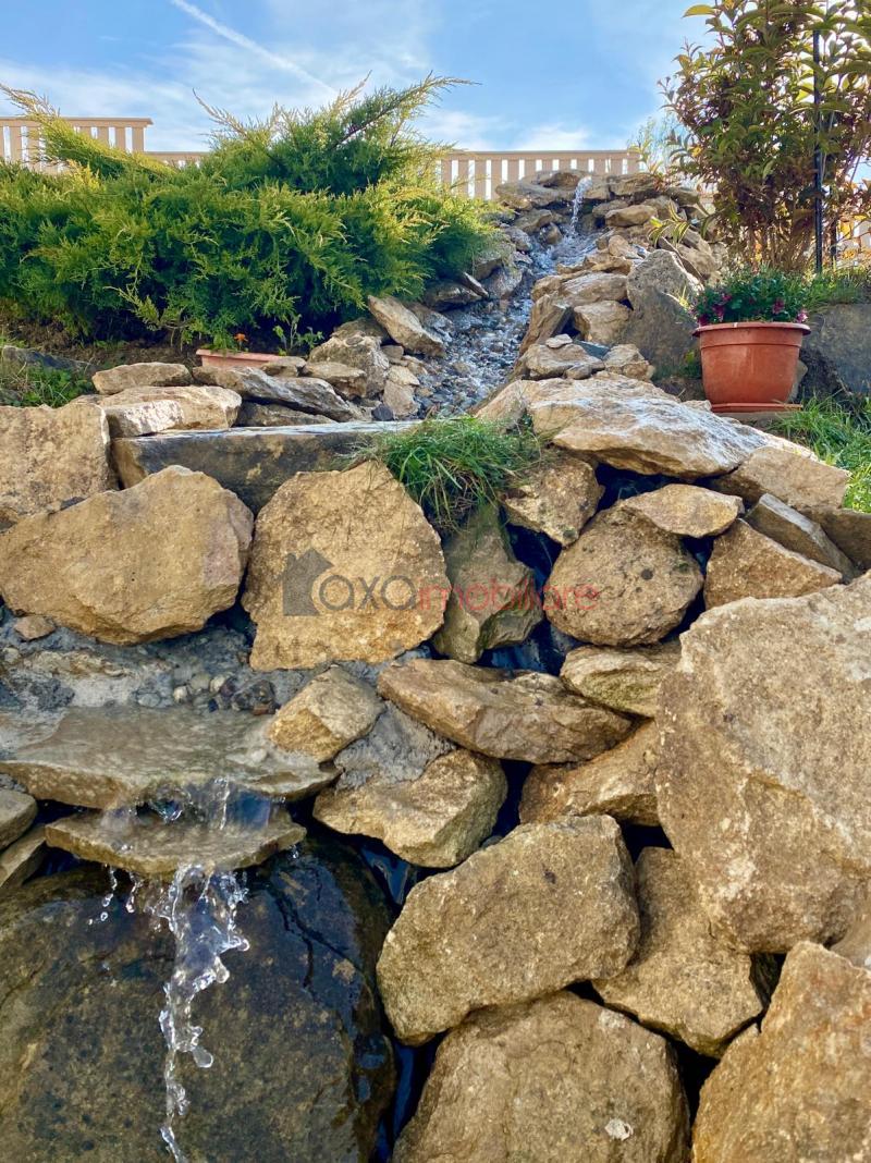 Casa individuala finisata cu gust si personalitate, foarte versatila; cu o cascada in curte si o priveliste cu iz de vacanta.