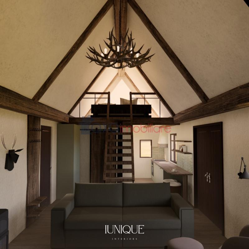 constructia acestor cabane. cabanele construite pe terenul aflat la vanzare sunt de aproximativ 40mp,gandite pe doua niveluri,jos;living,